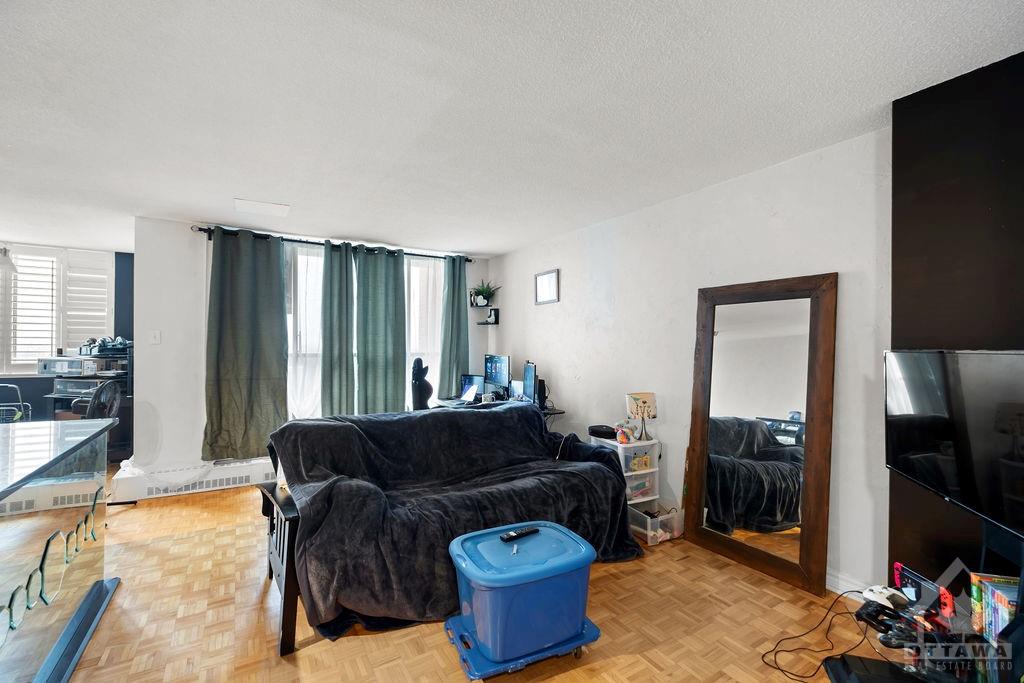 Bright 2 bedroom, 2 storey condo featuring an underground parking spot, storage locker, and amenities including an outdoor pool, sauna, exercise room, hair salon, library, tennis court, and a games/party room. Open living/dining areas with hardwood parquet flooring. Renovated kitchen with granite counters, hammered tin backsplash, and an island with a counter bar. Many large windows with shuttered blinds flood the space in natural light. Lower level of this unit comes complete with 2 bedrooms and a full bathroom. Enjoy your morning coffee on the balcony and relax with unobstructed views of the city, Parliament Hill, and the Gatineau Hills. Located within walking distance to public transit, restaurants, parks, walking paths and just minutes from schools, recreation, shopping, Montfort hospital & more!